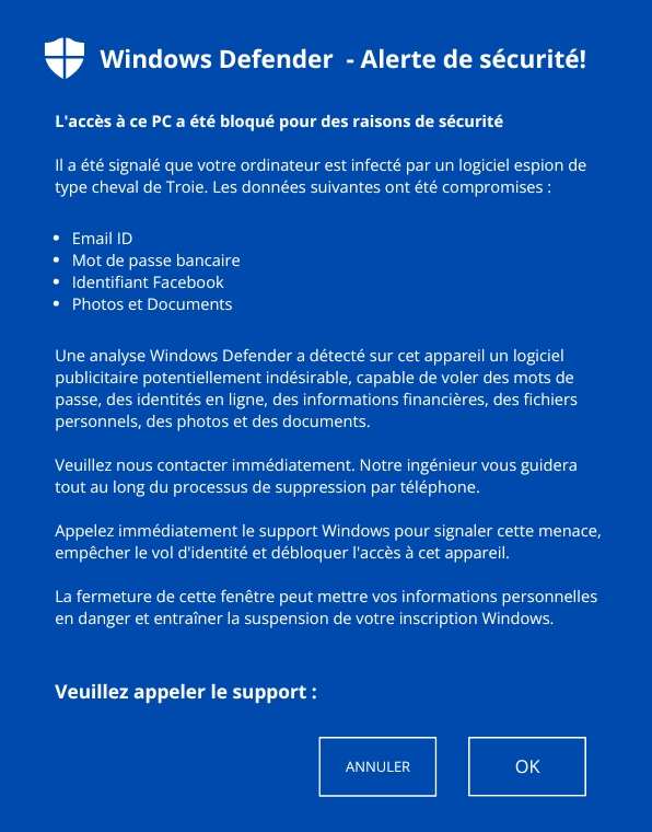 L'accès au PC a été bloqué. N'accédez pas et ne redémarrez pas ce PC Sai. Si vous manquez l'avertissement, vous ne disposez pas de suffisamment d'informations sur ce problème peut être perdu. Microsoft Nos experts vous accompagnent par téléphone tout au long de l'examen. L'exécution de cette application peut mettre votre PC en danger.